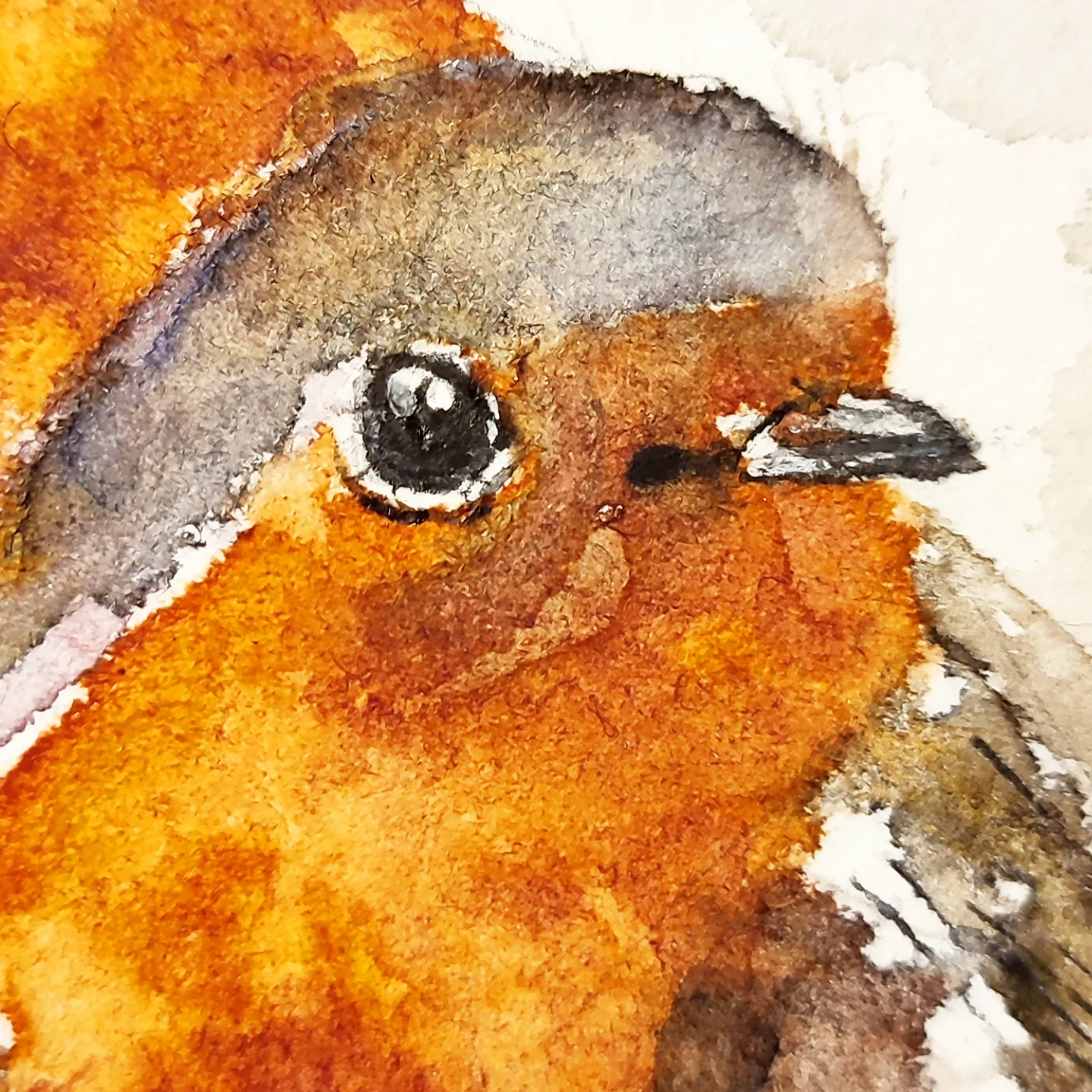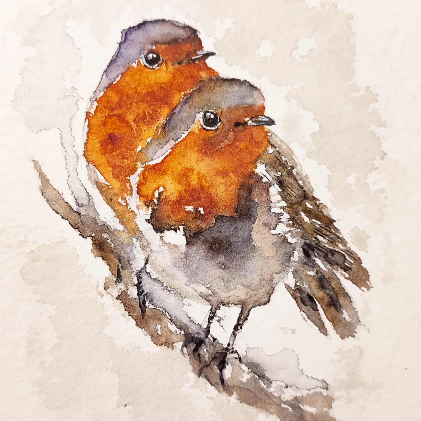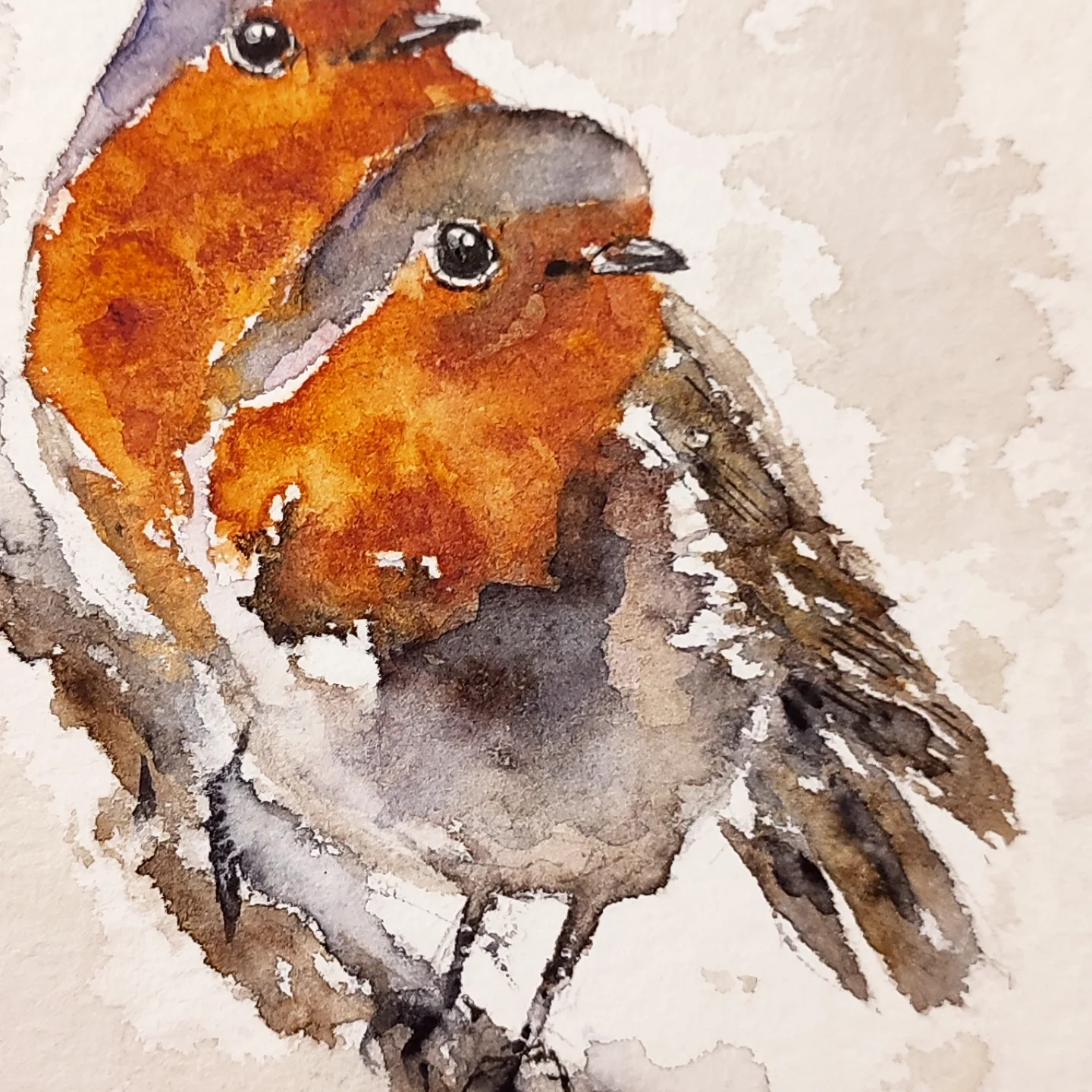 Le petit couple amoureux de rouge-gorge sur papier Hänemhule en 14,5 x 18 cm